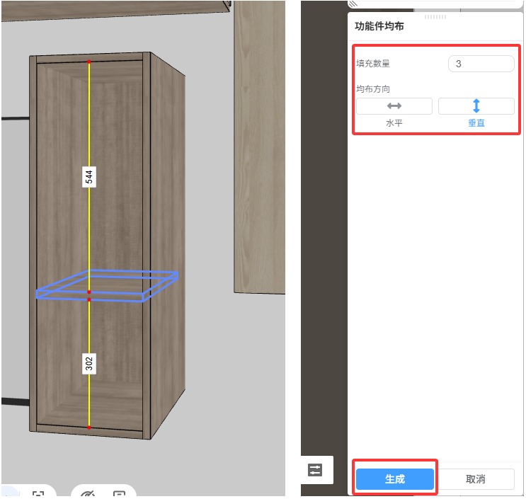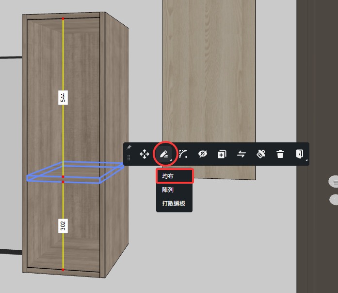 從衣櫃定制裡佈置一個帶有層板的吊櫃,要如何快速增加層板數量且間隔高度相同。